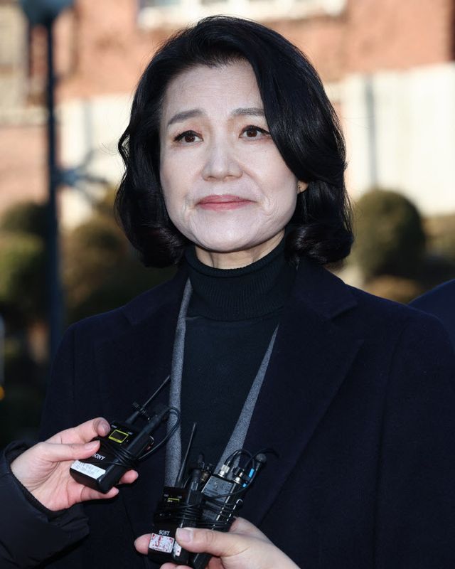 헌법재판소에서 탄핵소추안이 기각되면서 직무에 복귀하게 된 이진숙 방통위원장이 23일 오전 서울 종로구 헌법재판소에서 열린 방통위원장 탄핵심판 청구 사건 선고를 마친 뒤 대심판정을 나와 취재진 질문에 답하고 있다.(사진=연합뉴스 제공)