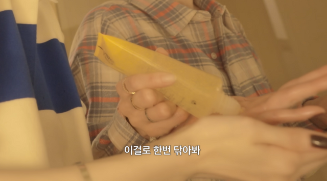 겔랑의 ‘키스키스 샤인 블룸 립스틱’의 베스트 컬러인 ‘#520 러브 블룸’ 컬러와 봄날의 장미 정원을 연상케 하는 ‘#609 스프링 로즈’를 섞어 발라 만든 컬러라고 합니다. 거기에 더욱 윤기있는 입술로 표현하기 위해 ‘키스키스 비 글로우 오일’ 중 생기 넘치는 핑크 컬러인 ‘#458 로즈 팝 글로우’ 제품을 사용해 촉촉하고 볼륨감 있는 입술로 만들어 줬어요.