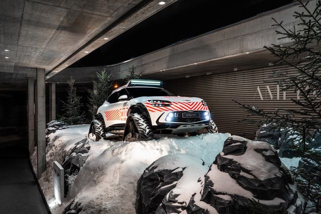 제네시스는 20~24일(현지시간) 다보스포럼이 열리는 스위스 다보스의 아메론 호텔에서 'GV60 다목적 험로주행 콘셉트(GV60 Mountain Intervention Vehicle Concept)'를 전시했다.