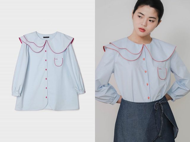 첫 번째 추천 아이템은 여성복 브랜드 '가연리(GAYEON LEE)'의 '포니 코튼 블라우스'다. 더블 레이어 칼라와 7부 셔링 소매가 돋보이는 이 셔츠는 블루 컬러와 레드 파이핑 디테일이 조화를 이루어 러블리한 무드를 자아낸다. 특히 발랄하고 여성스러운 스타일을 선호하는 이들에게 적합한 아이템으로, 심플한 하의와 매치해도 스타일리시한 룩을 완성할 수 있다.