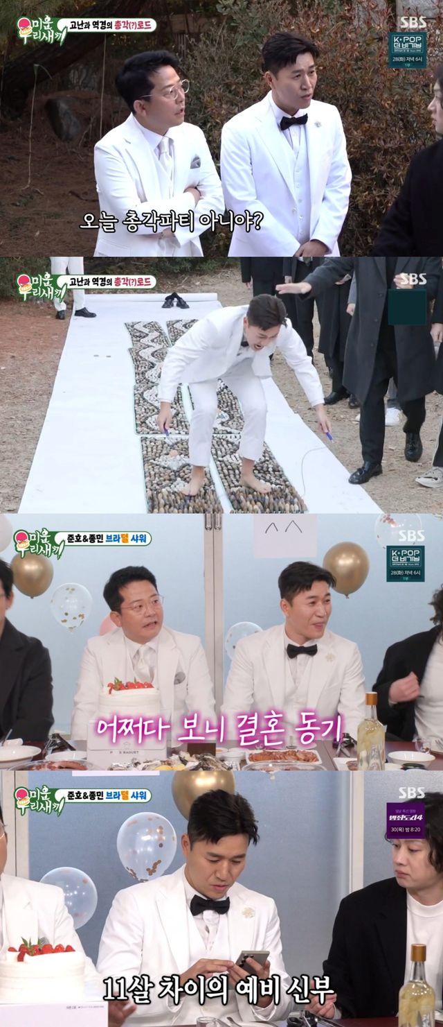 26일 방송된 SBS '미운 우리 새끼'(이하 '미우새')에서는 김종민과 김준호를 위한 탁재훈, 허경환, 이상민, 최진혁, 김희철, 임원희의 총각 파티가 전파를 탔다.