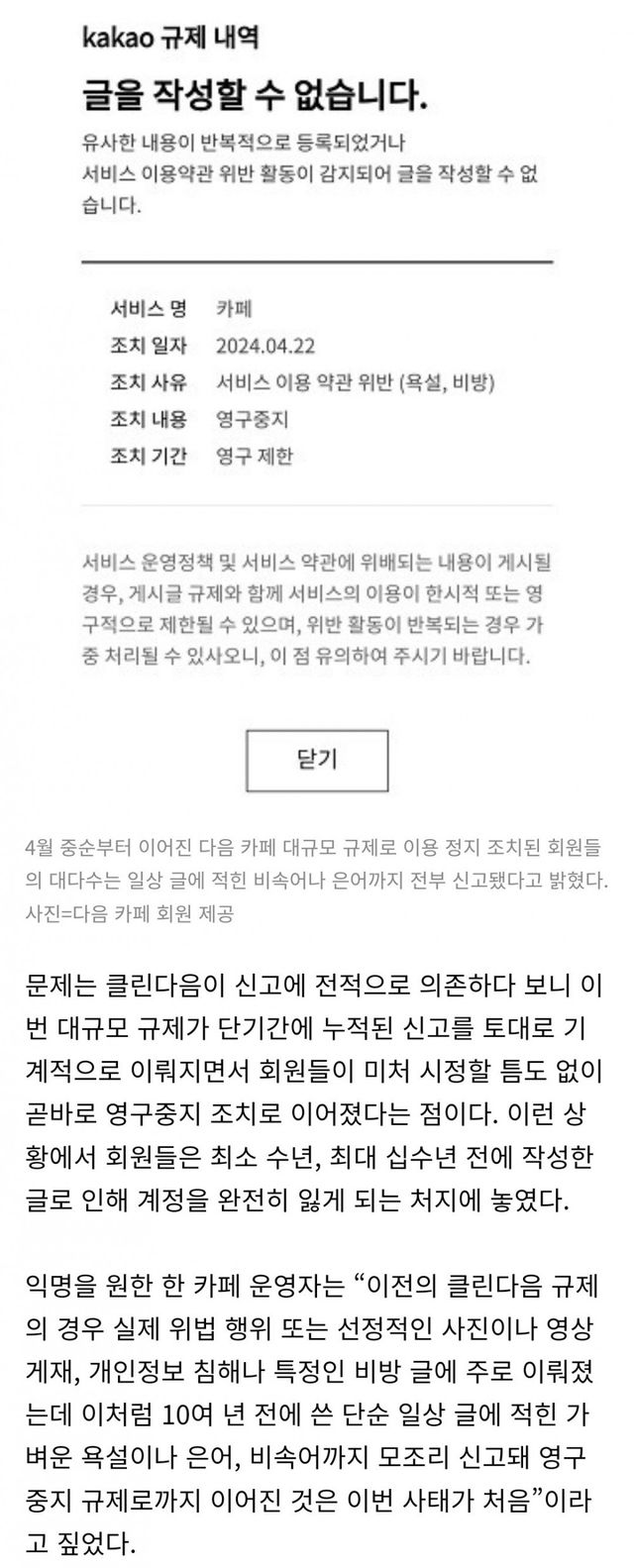 심지어 십년전글도 다 규제 먹여서 이전 글 안지우고 있으면