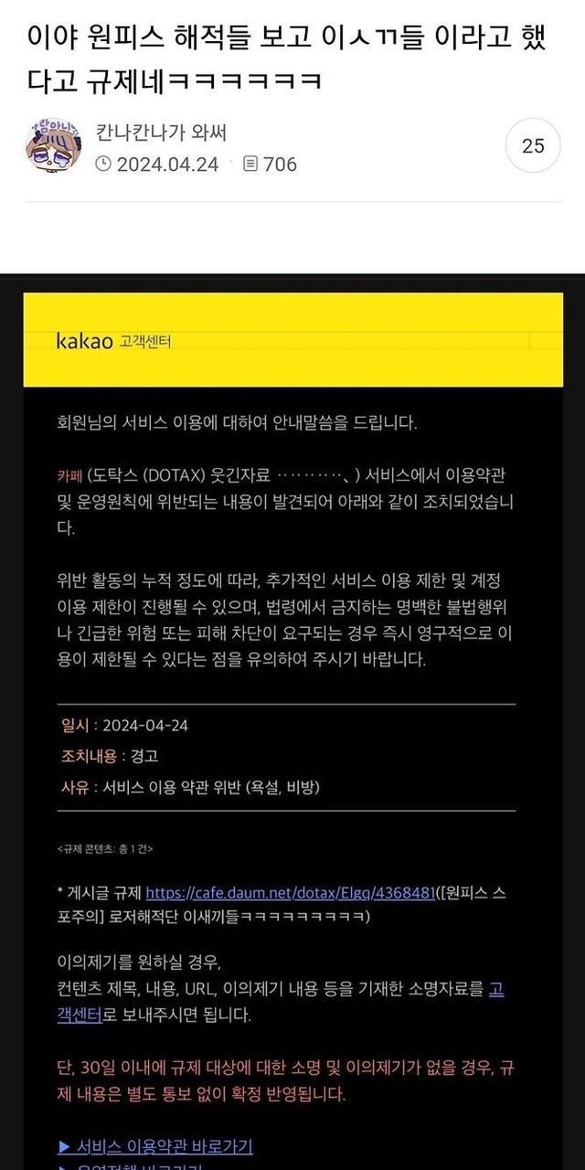 경고 누적으로 순식간에 아이디 영구정지 당함 ㅋㅋ