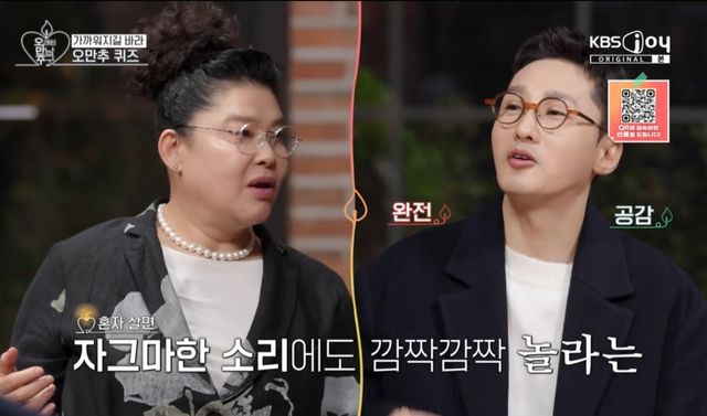 깜짝 놀란 황동주는 "너무 정확하게 맞혀주셨다. 매번은 아니지만 집에 들어갔을 때 깜깜한 게 싫다"고 설명했고, 이어 이영자는 "혼자 살면 초인종 소리에도 깜짝깜짝 놀란다. 올 사람이 없다는 게 적응이 된 것 같다"며 공감대를 형성했다.