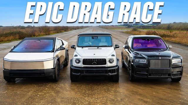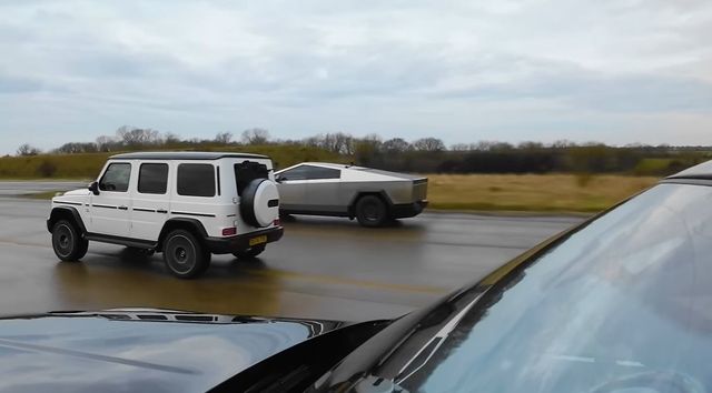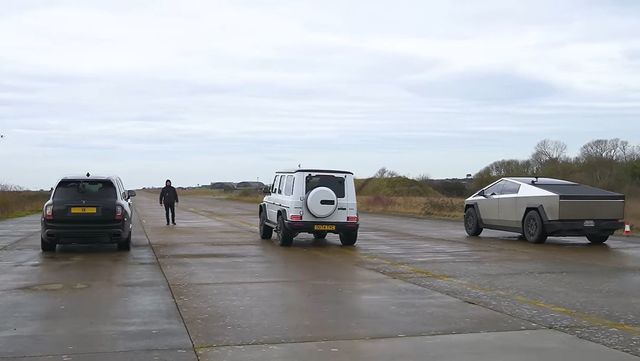듀얼 모터를 장착한 테슬라 사이버트럭과 롤스로이스 컬리넌, 메르세데스-AMG G63이 영국의 한 비행장에 모여 1/4마일(약 400m) 드래그 레이스를 펼쳤다.