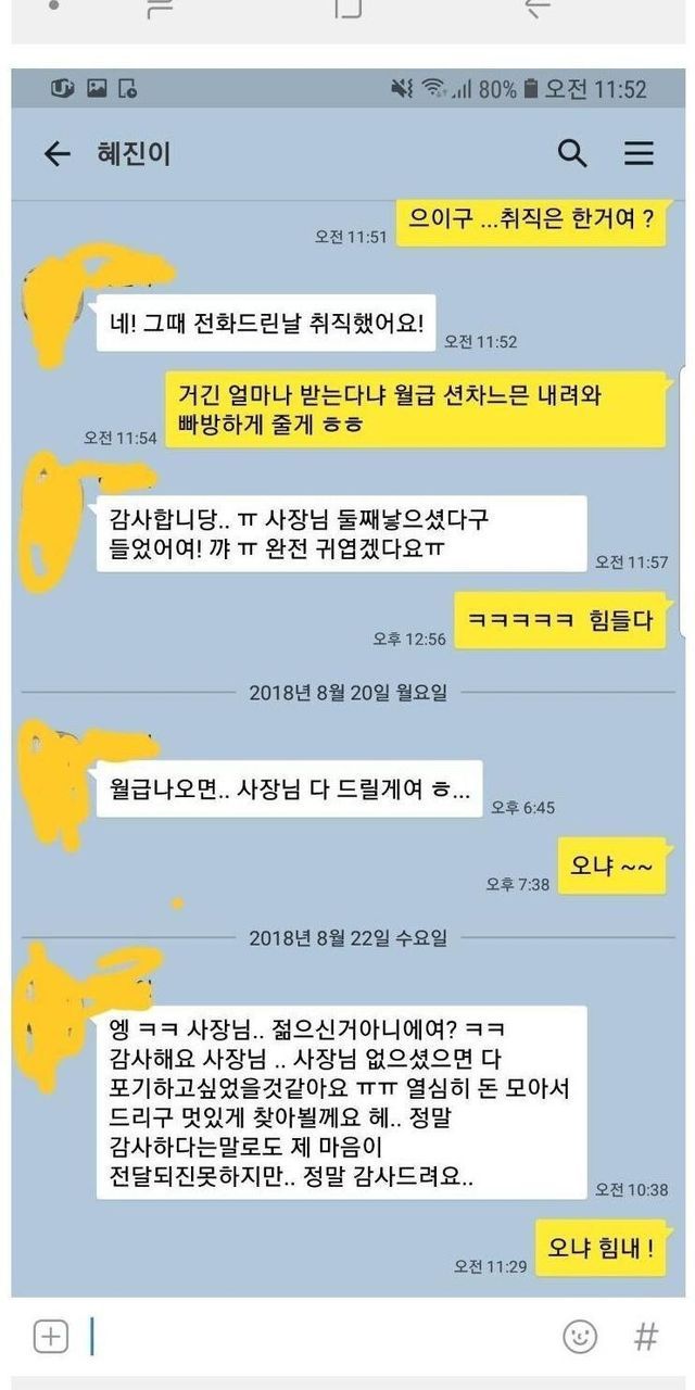 그만둔지 1년 된 알바한테 연락이 왔어요