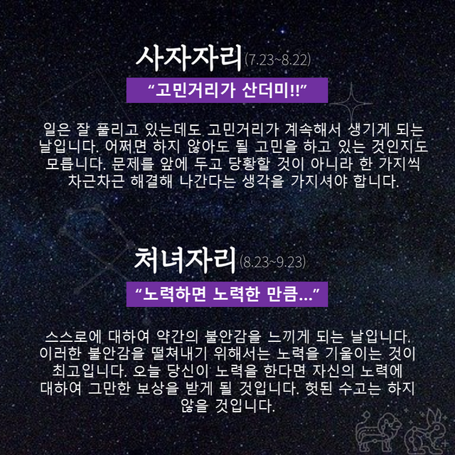 Δ 처녀자리 : 노력하면 노력한 만큼…