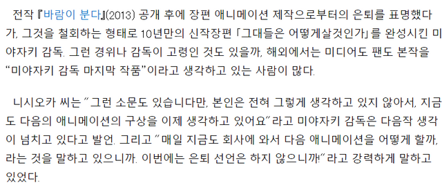 죽을 때까지 은퇴 안 할거 같기는 했음 ㅋㅋ 지브리가 제대로 된 후계자가
