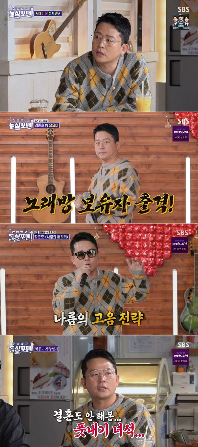 김준호는 지난 28일 방송된 SBS ‘설날 특집 신발 벗고 돌싱포맨’(이하 ‘돌싱포맨’)에서 트로트 4인방 가수 진성, 홍진영, 박지현, 요요미와 함께 명절 연휴 웃음을 책임졌다.