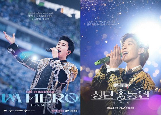 2024년 8월 28일 개봉한 ‘임영웅 l 아임히어로 더 스타디움’은 2024년 5월 약 10만 명의 영웅시대와 서울월드컵경기장을 하늘빛으로 가득 채운 임영웅의 첫 스타디움 입성기를 다룬 영화다. 특히 공연 실황 영화 최초로 아이맥스와 스크린X 특별관 동시 개봉을 확정했으며, 35만 관객을 돌파하며 역대 공연 실황 영화 누적 관객 수 1위라는 기록을 세우기도 했다.