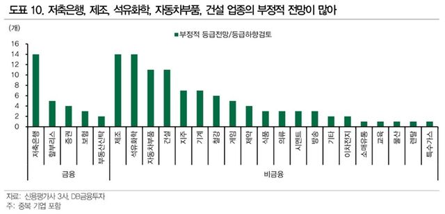 박경민 DB금융투자 연구원은 "석유화학, 저축은행, 건설 중심으로 추가 하락 가능성이 높다"고 전망했다.
