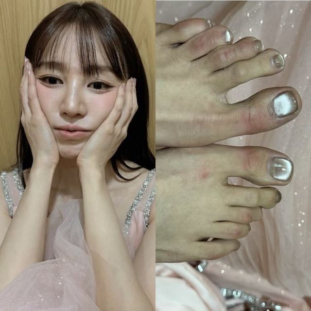 사진 속 윤은혜는 두 볼을 감싸며, 멍한 표정으로 카메라를 응시했다. 윤은혜는 빨갛게 부어오른 발 사진도 공개했다. 그의 혹독했던 연예대상 MC 신고식이 느껴진다.