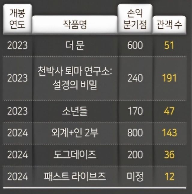 13편 중 11편이 손익분기점 실패