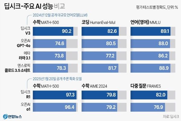 딥시크의 서비스가 훨씬 적은 비용으로 오픈AI의 챗GPT와 맞먹는 성능을 갖췄다는 소식에 27일 AI 관련주에서 과도한 투매현상이 나타난 것이다.