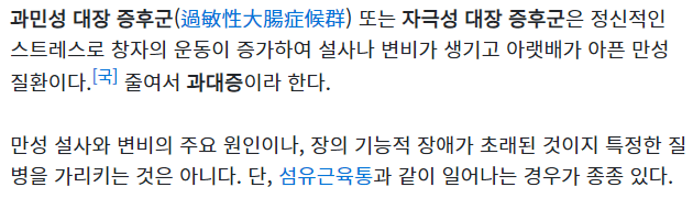 진짜 심하면 자기도 모르는사이에 똥이나 방귀가 계속 새어나와서 아예 일상생활이 불가능한 수준도 있다고 함