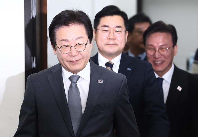 더불어민주당의 이재명 대표와 박찬대 원내대표 등 지도부가 31일 오전 서울 여의도 국회에서 열린 최고위원회의에 입장하고 있다. / 뉴스1