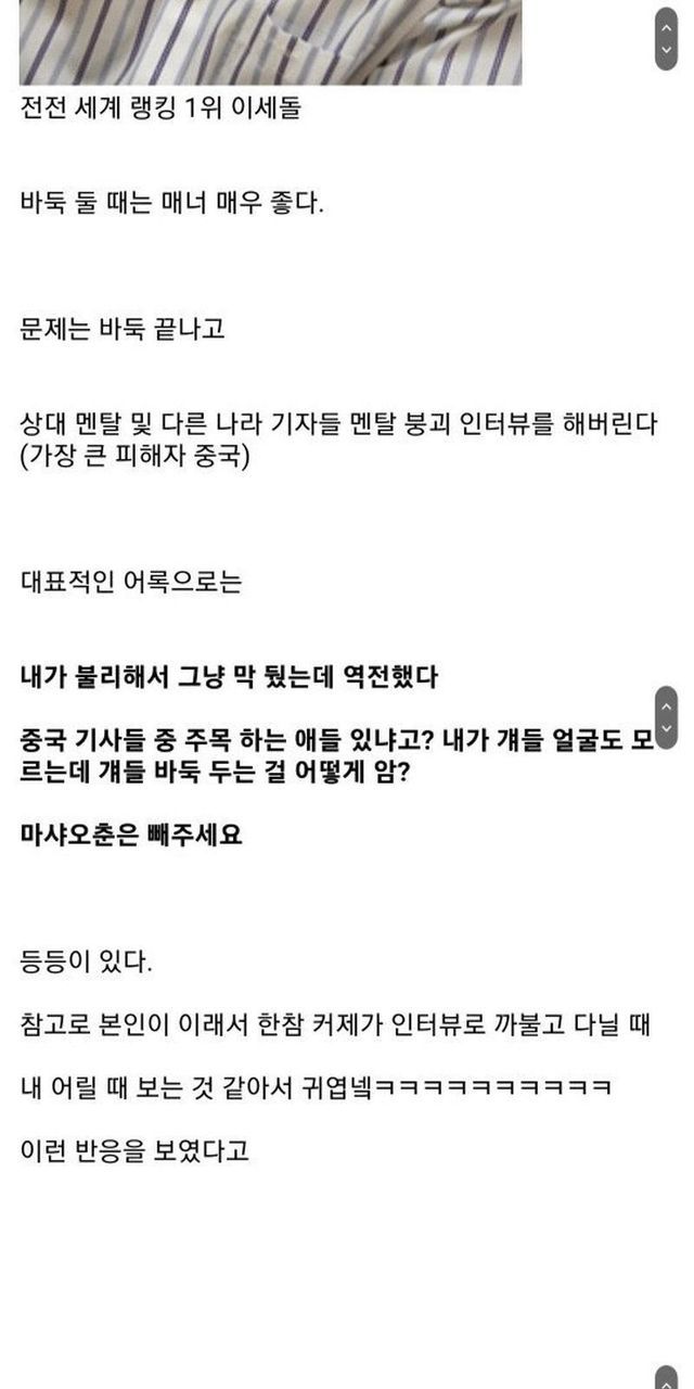 바둑판에서 의외로 매너가 좋지 않다는 한국기사들--