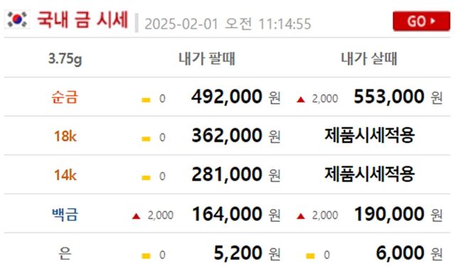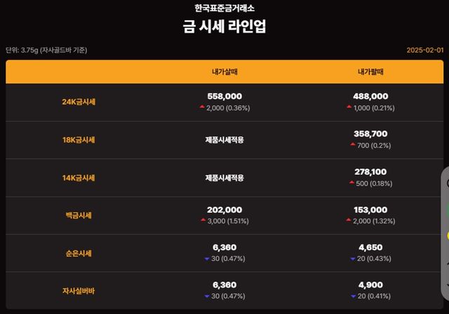 순금(24K) : 매입가 53만 3000원 / 매도가 49만 2000원