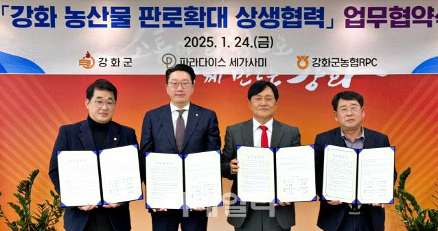 [이데일리 이선우 기자] 파라다이스세가사미가 인천 지역 농산물 이용을 늘리기 위한 협약을 체결했다. 파라다이스세가사미는 최근 인천시 강화군, 강화군농협쌀조합공동사업법인(이하 강화군조공법인)과 강화 지역 농산물 판로 확대와 안정적인 공급망 확보를 위한 3자 협약을 체결했다.