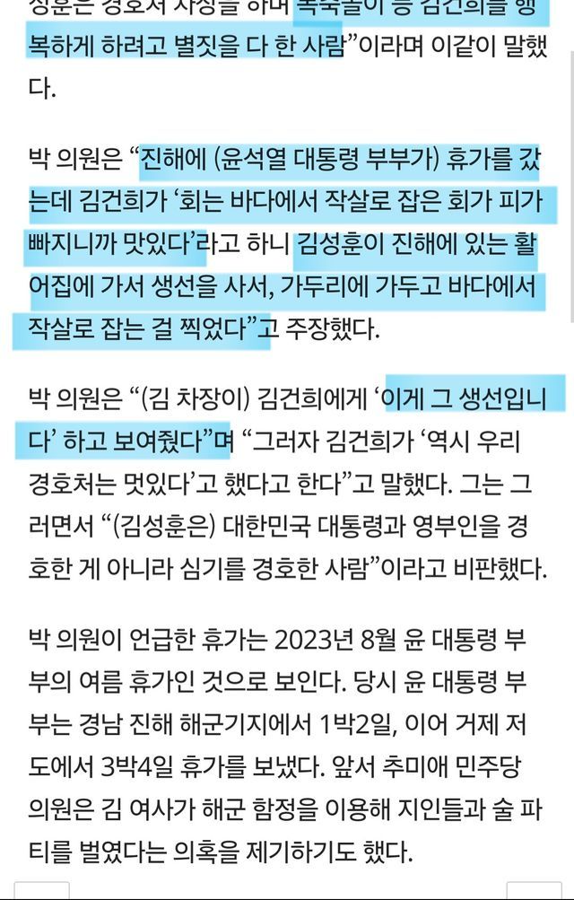 이때 김건희가 "회는 바다에서 작살로 잡는 회가 맛있다"는