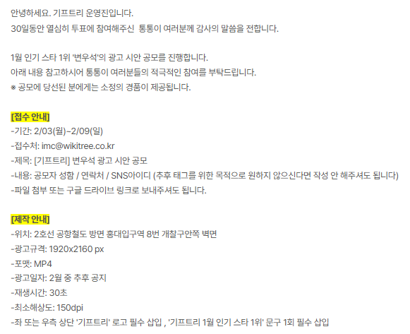 광고 시안 공모 내용. / 기프트리