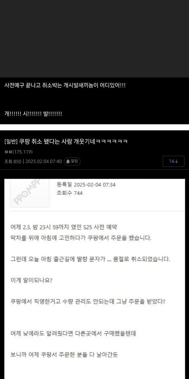 사전예약 주문 받아놓고 품절로 강제 취소행 ㅋㅋㅋ