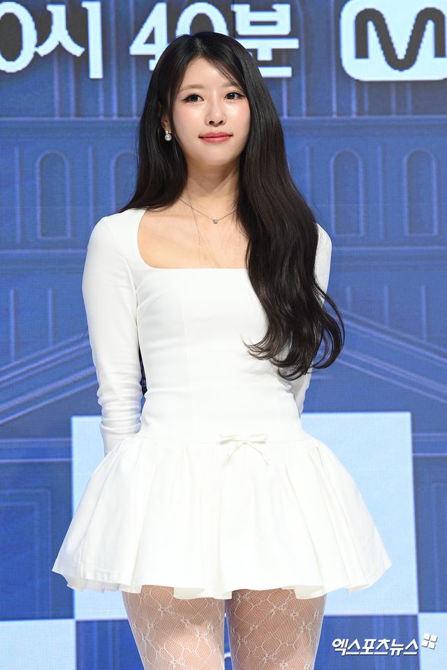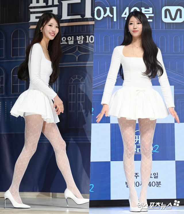 이날 제작발표회에 참석한 가수이자 방송인 이미주가 포토타임을 갖고 있다.