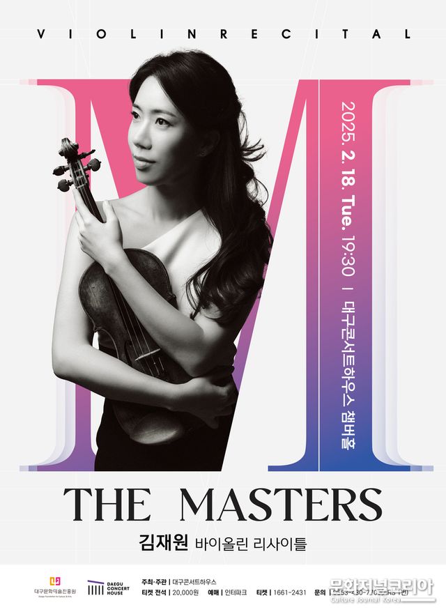 ‘더 마스터즈’는 2025년 대구콘서트하우스 신규 기획공연으로 매월 1회, 국내외에서 주목받는 연주자를 초청해 독주회를 펼치는 시리즈 프로그램이다. ‘더 마스터즈’ 무대의 첫 주인공은 한국 클래식계를 이끌 차세대 음악가로 주목받는 바이올리니스트 김재원이다.