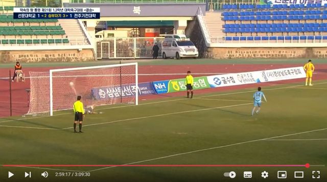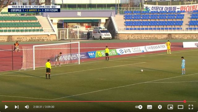 전민수의 이채로운 승부차기 장면은 SBS Sports 유튜브 채널 ‘선문대 vs 전주기전대’ 경기 풀영상 2시간 57분 45초 지점부터 보면 된다.