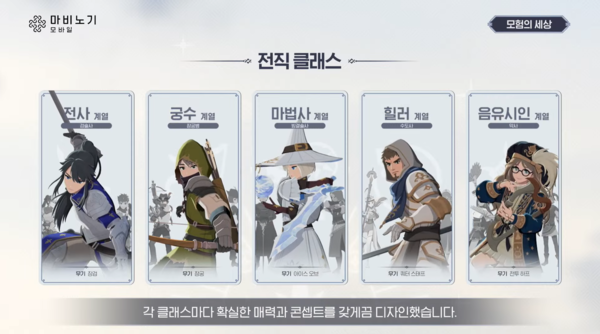 전투 직업으로는 5가지 견습 클래스와 더불어 견습 클래스 하나당 3가지 전직 클래스를 제공한다. 근접, 원거리, 마법사 등 스타일마다 특정 전투 스타일에 특화된 다양한 클래스가 제공된다. 각각의 전투 연출 또한 일부 공개됐으며, ‘마비노기’ 스타일의 그래픽으로 꾸며진 깔끔하고 세련된 전투 연출이 돋보인다.