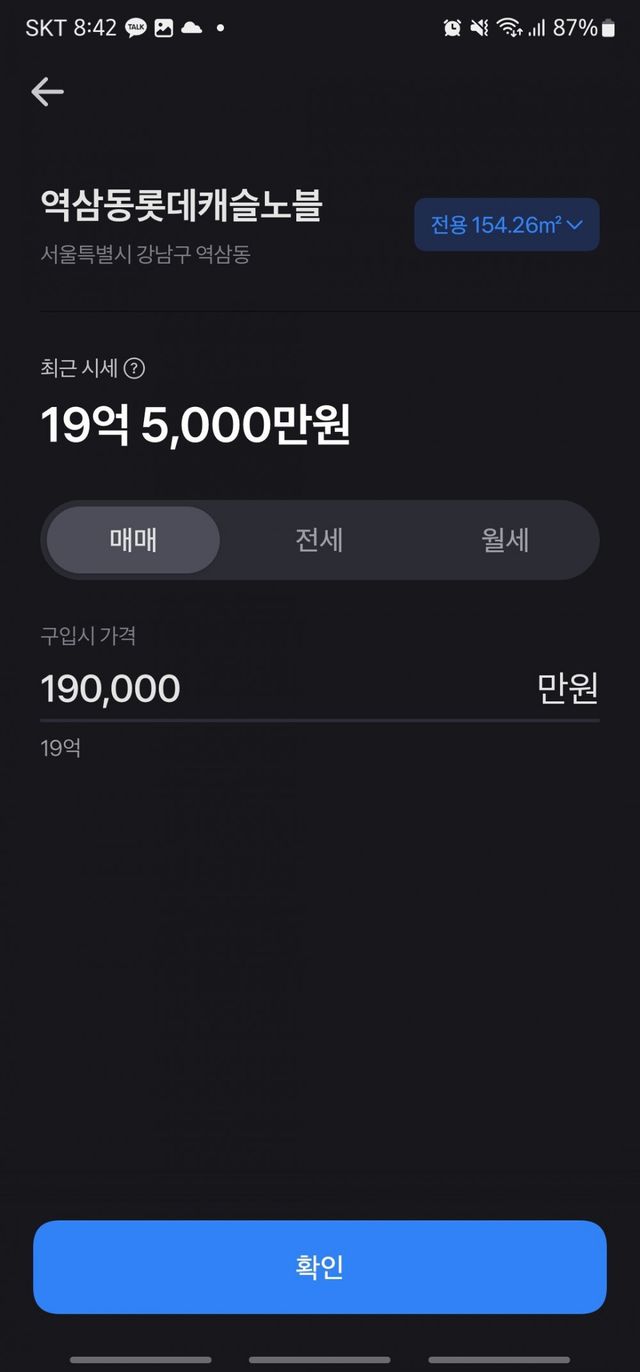 그다음에 구매 금액 입력란에서 그냥 19억 쓰윽 적어낸다.