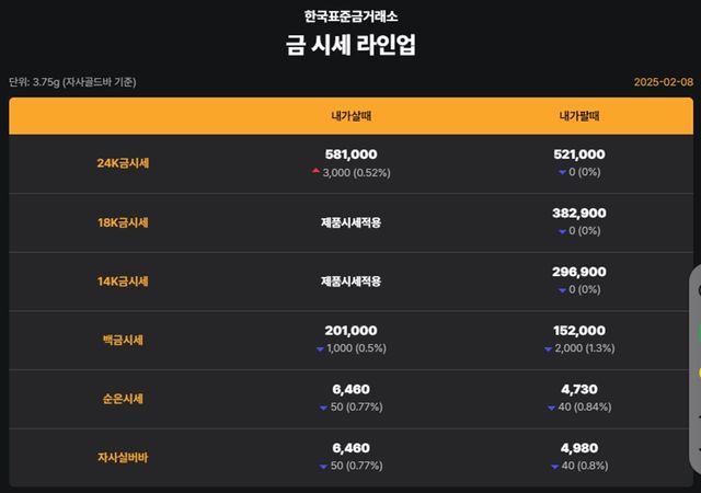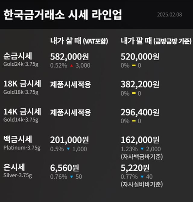 순금(24K) : 매입가 58만 2000원 / 매도가 52만 원