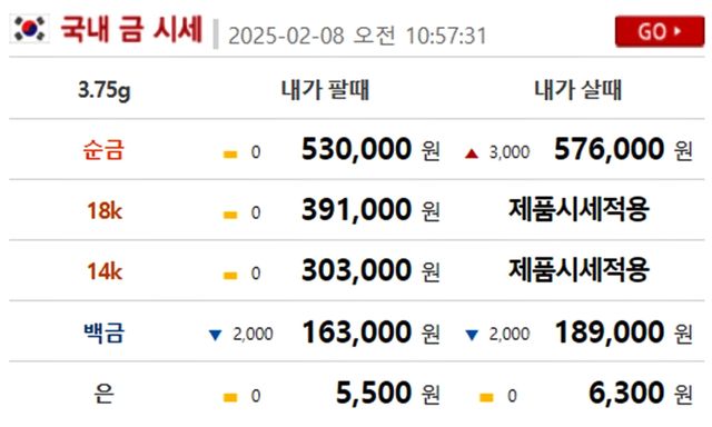 순금(24K) : 매입가 57만 6000원 / 매도가 53만 원