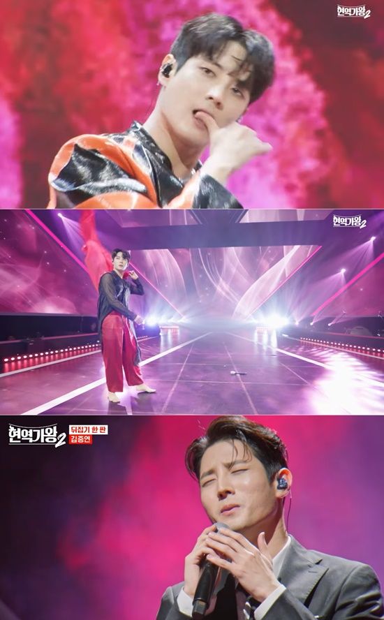 김중연은 이번 '현역가왕2'에서 전매특허 퍼포먼스 장인 면모부터 호소력 짙은 매력의 가창력까지 선보였다. 자체평가전 '촛불잔치'를 시작으로 본선 1차전 '열애', 본선 2차전 '외로운 술잔' 그리고 성리와 맞붙은 '정거장' 등 다양한 스타일과 분위기의 무대를 통해 김중연의 진가를 보여줬다.