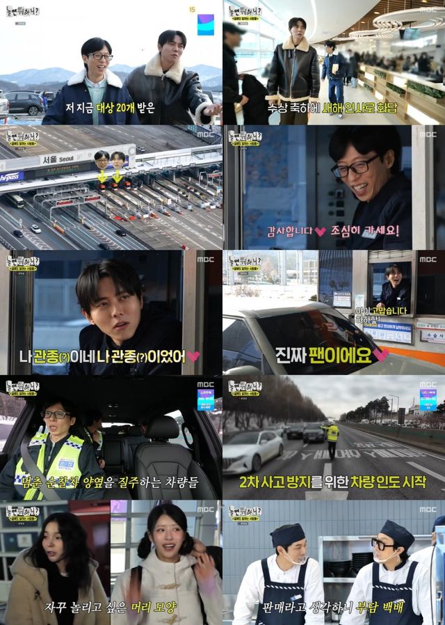 지난 8일 방송된 MBC ‘놀면 뭐하니?’(연출 김진용 이주원 왕종석 안지선 방성수/작가 노민선)는 고속도로에서 곳곳에서 일하는 유재석과 주우재의 모습을 담은 ‘설에도 일하는 사람들’ 편으로 꾸며졌다.
