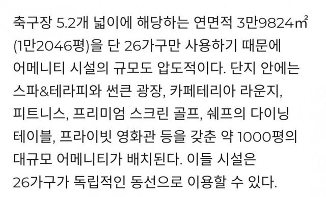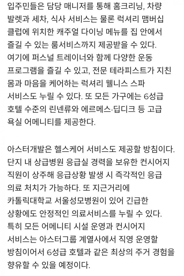 또한 입주민들은 최고의 6성급 호텔 서비스를 누릴수가 있음