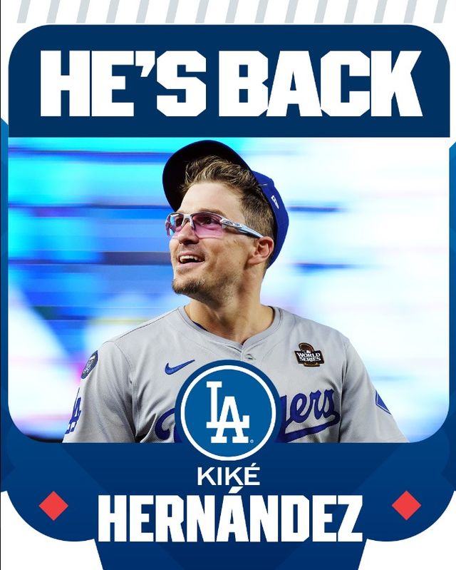 로스앤젤레스(LA) 다저스가 '가을 사나이' 키케 에르난데스(34)를 결국 다시 데려왔다. 주 포지션이 2루수인 슈퍼 유틸리티다. 이로서 김혜성(27)의 경쟁자가 다시 늘어났다.