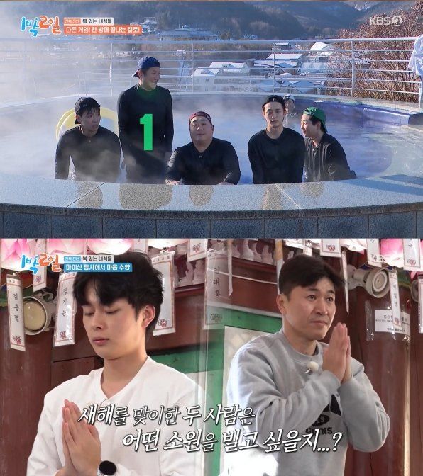 전날 방문했었던 마이산 탑사로 이동한 김종민과 유선호는 새해 마음 수양을 위한 퇴근 미션 108배를 진행했다. 차분하게 절을 이어가던 두 사람은 금세 체력이 바닥나면서 힘겨워하기도 했지만 끈기 있게 집중한 끝에 108배에 성공했고, 두 손을 모은 채 마음속으로 각자의 소원을 빌었다.