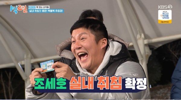 두 사람은 "올해 우리 뭔가 된다"라며 환호했고, 야외 취침에 당첨된 나머지 멤버들은 허탈감을 감추지 못했다. 추가로 실내에서 취침할 1명을 가리는 구제 미션에서는 유선호가 승리하며 조세호, 딘딘과 함께 숙소에서 밤을 보냈다.