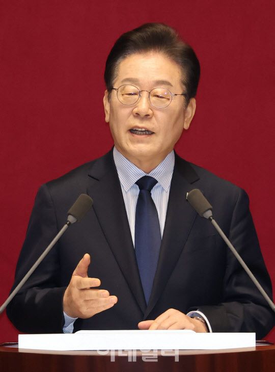 이재명 더불어민주당 대표가 10일 국회 본회의장에서 교섭단체 대표연설을 하고 있다. (사진=노진환 기자)