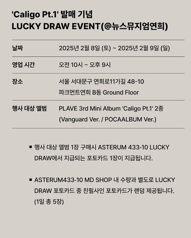 'Caligo Pt.1' 발매 기념 LUCKY DRAW 이벤트 내용 / 인스타그램 @asterum433_10