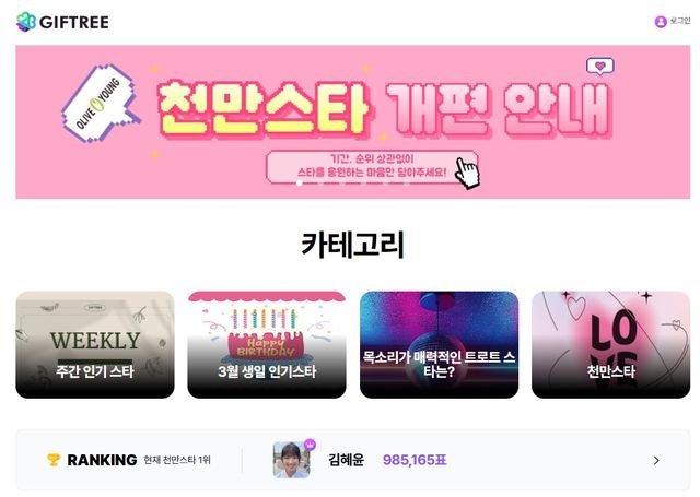 ‘천만스타’에서 백만 표를 달성할 경우 합정역 CM보드 광고가 제공되며, 천만 표를 달성할 경우에는 전국 올리브영 매장 전광판 광고와 홍보기사패키지가 제공된다.