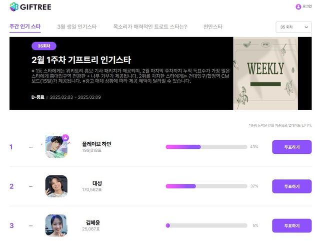 한편, 플레이브는 팬 투표 서비스 ‘기프트리’의 ‘주간 인기 스타’와 ‘천만스타’ 후보에 등록되어 있다. ‘주간 인기 스타’에서 2월 마지막 주차까지 누적 득표수가 가장 많은 스타에게는 홍대입구역 전광판 광고, 홍보기사패키지와 함께 스타의 이름으로 나무 기부가 이루어진다.