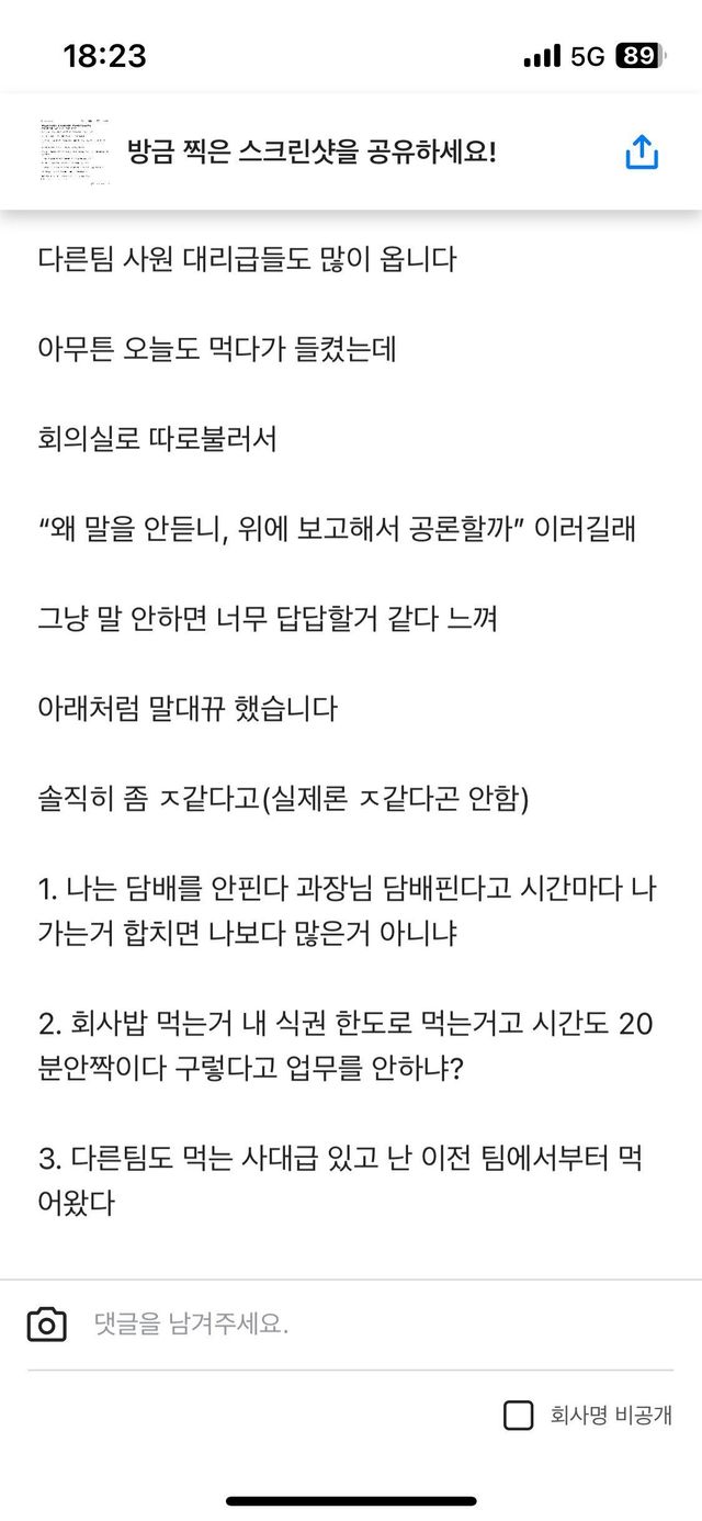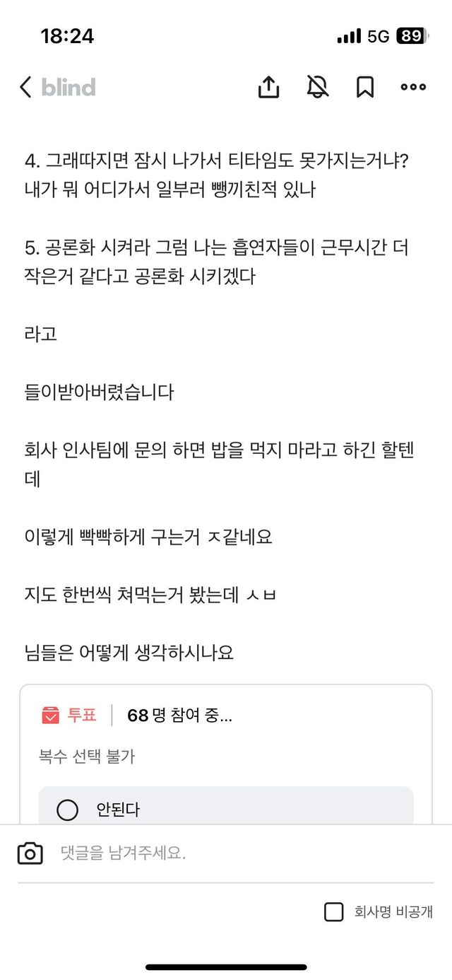 - 흡연하는거보다 시간도 짧은데 왜 밥먹는거로 뭐라하냐 대듬