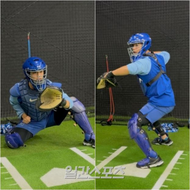 '포수 아카데미'에서 캐칭과 스로잉 등 포수 전반적인 훈련을 소화하는 엄형찬의 모습. 본인 제공