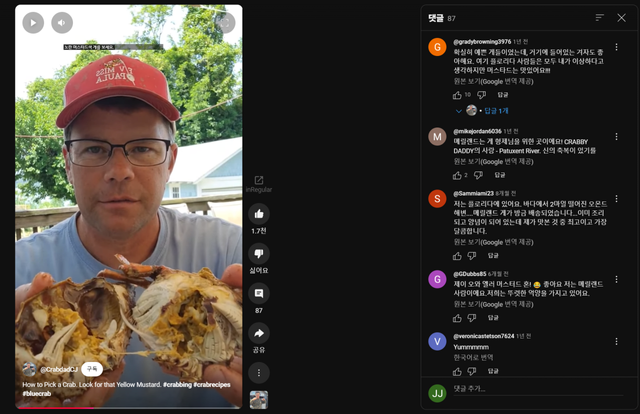 100만뷰 찍은 흑인 형님이 10년전에 올리신 게 먹는법 영상에서도 다 드신다..