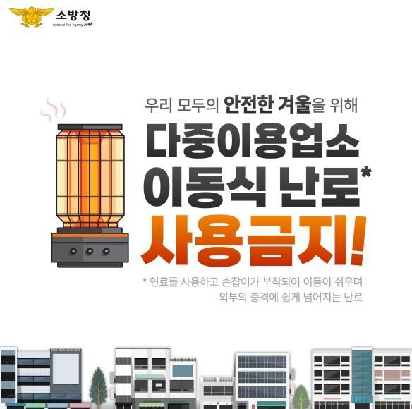 광명소방서, 겨울철 이동식 난로 사용 금지 및 비상구 확보 안내