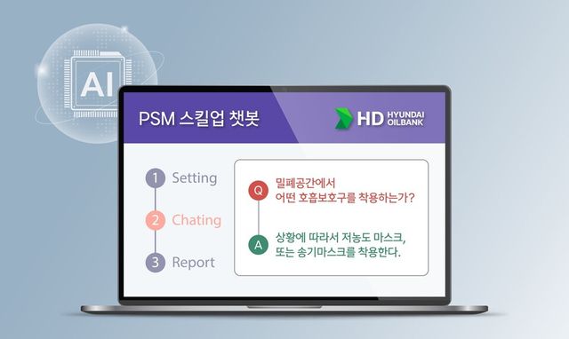 PSM 스킬업 챗봇은 팔란티어가 제공하는 AI 거대언어모델(LLM) 플랫폼을 기반으로 HD현대오일뱅크 빅데이터 전담 조직인 BAO팀이 공정안전관리 규정 및 내부 데이터를 접목해 개발을 완료, 공정안전관리의 효과적인 학습을 지원한다.