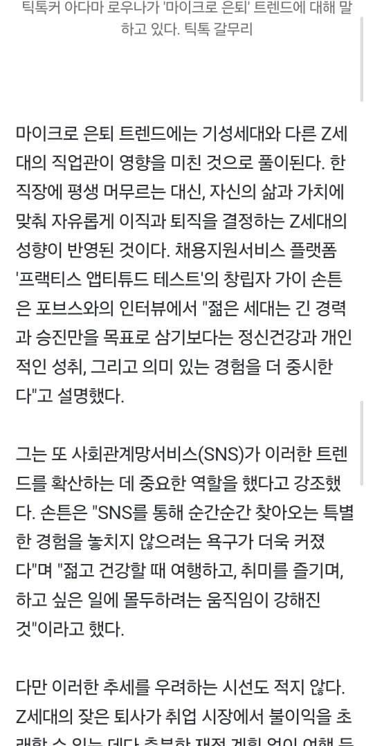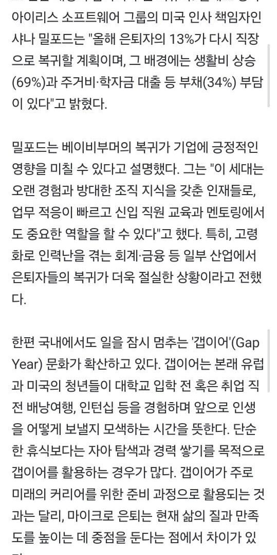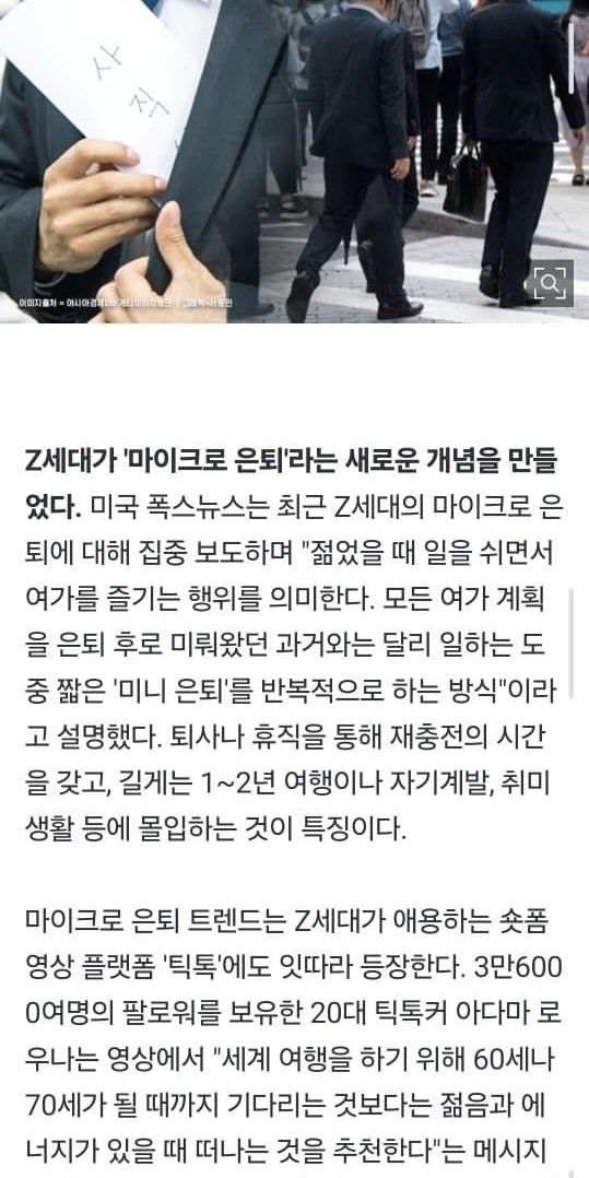 미국은 Z세대 (95년~10년 출생)는 일하다 지쳐서 잠깐 쉬려고 은퇴하는게 유행중인데