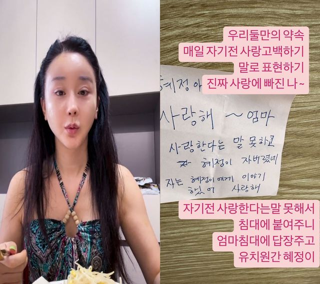 쪽지에는 함소원이 딸에게 “혜정아 사랑해. 사랑한다는 말 못 하고 혜정이 자버렸네. 자는 혜정에게 이야기했어. 사랑해”라고 적혀있었다.